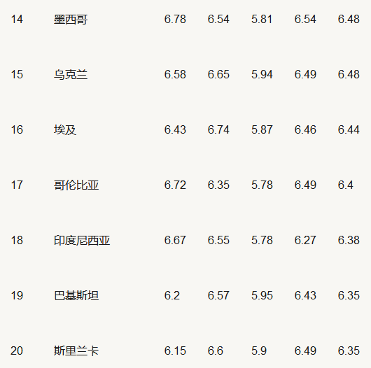5. 2017年雅思A類(lèi)考試成績(jì)TOP 40的國家或地區
