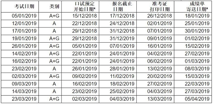 2019年1月至3月雅思考試